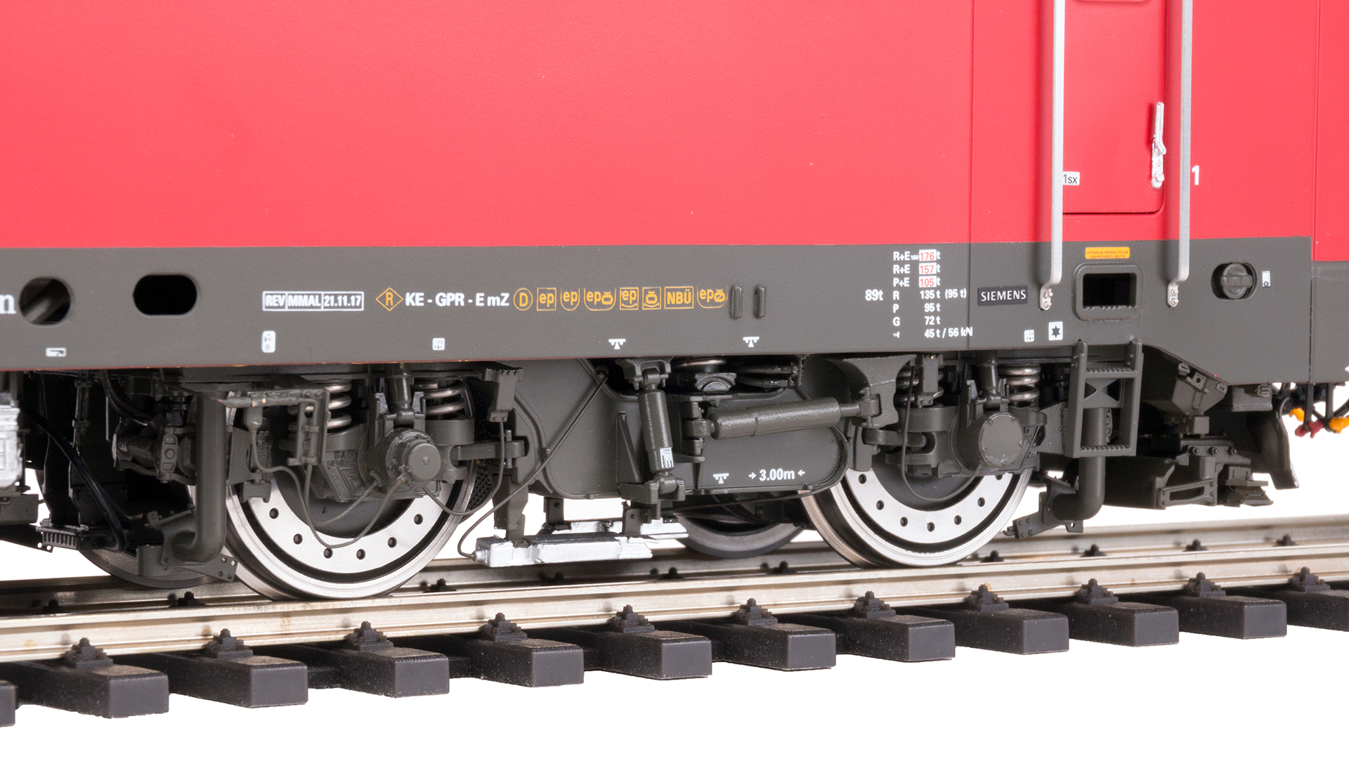 Präzisionsmodell aus Zink-Druckguß, Messing und Edelstahl, 2 Hochleistungsmotoren, Multiprotokoll Digitaldecoder, Breitbandlautsprecher, vorbildgerecht digital steuerbare Stromabnehmer in AC, DC oder MS Version, Führerstandsbeleuchtung, in Fahrtrichtung wechselndes Spitzenlicht, rote Zugschlußbeleuchtung einzeln schaltbar, Fernlichtfunktion, Warmlicht LED’s, robuster kugelgelagerter Antrieb und Getriebe auf alle Achsen, Achsen kugelgelagert und gefedert, wartungs- und geräuschfreie Stromabnahme über Achslager, Radreifen aus Edelstahl, Federpuffer, zu öffnende Führerhaustüren, detaillierter und mehrfarbig lackierter Führerstand, detailliert nachgebildeter Maschinenraum mit schaltbarer Maschinenraumbeleuchtung, Schraubenkupplungen austauschbar gegen KM1 Doppelhaken- oder Klauenkupplungen, vorbildgerechte Lackierung und Beschriftung. Mindestradius 1020mm, LüP 59,3 cm, Gewicht 7,5 kg. Technische, optische und Detailänderungen behalten wir uns vor!