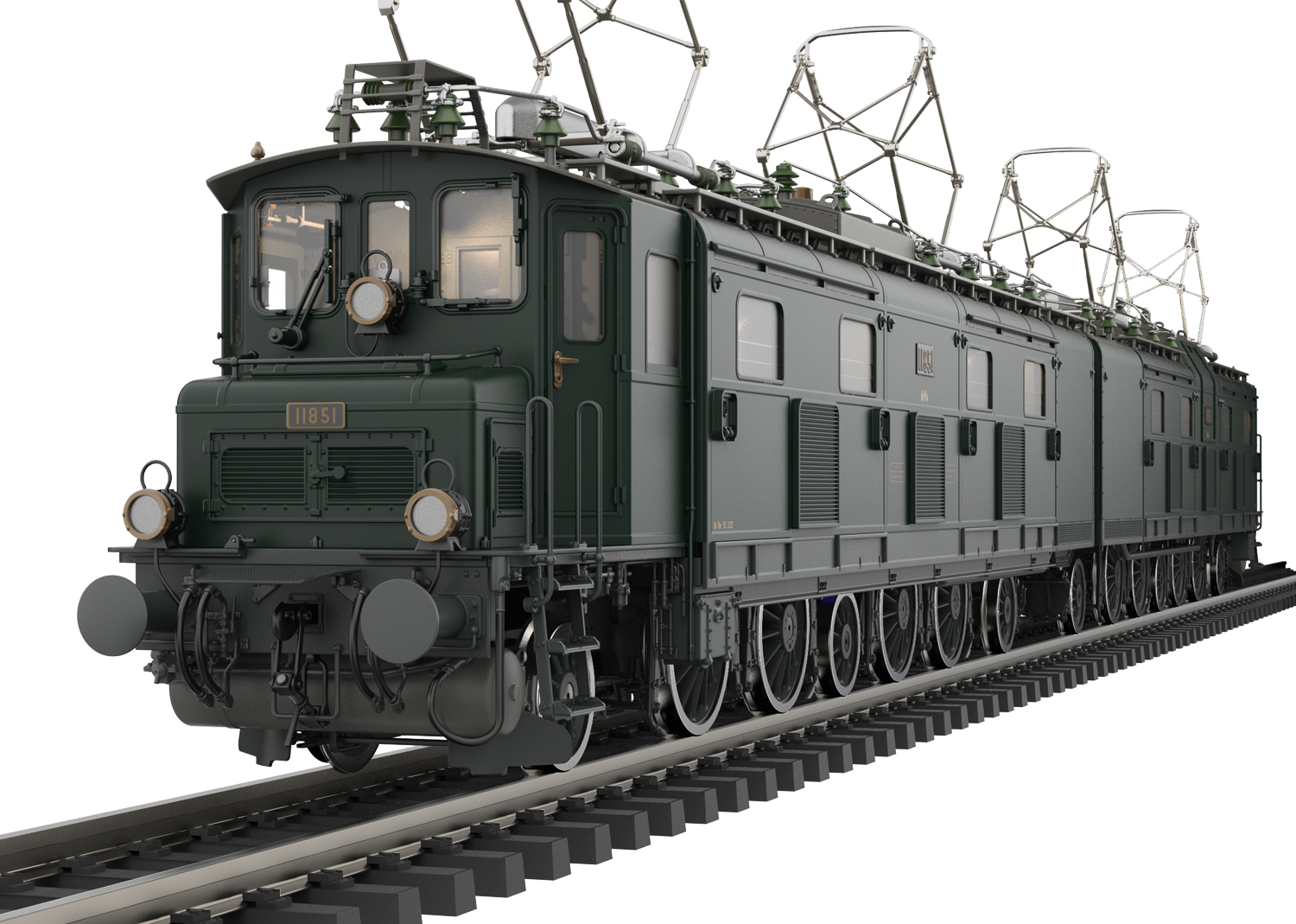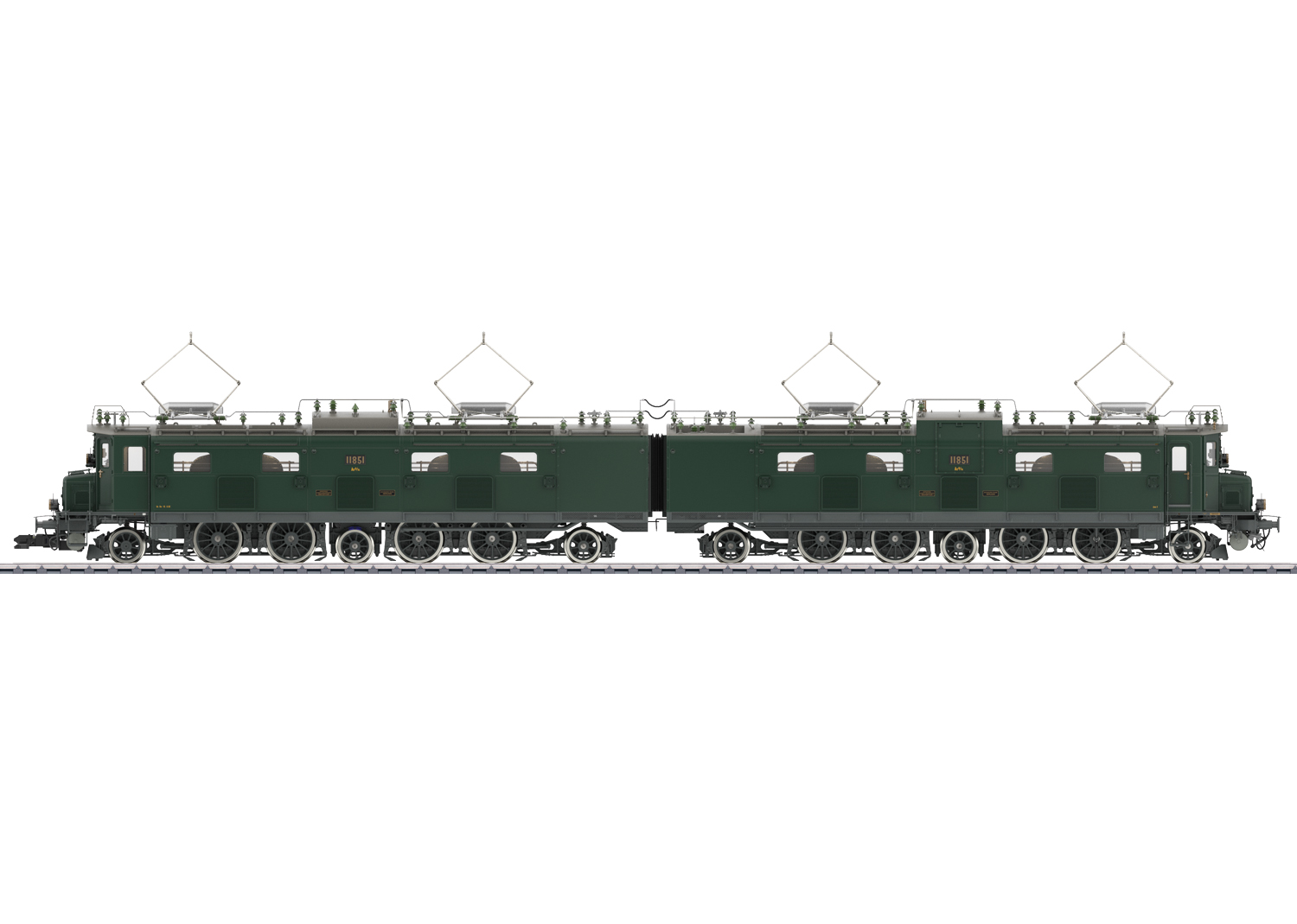 Vorbild von märklin 55818: Elektrolokomotive Serie Ae 8/14 Nr. 11851 der Schweizerischen Bundesbahnen (SBB) in tannengrüner Grundfarbgebung ihres Auslieferungszustandes von 1932. Die Lok war bis 1938 in diesem Zustand in Betrieb. Epoche II.
